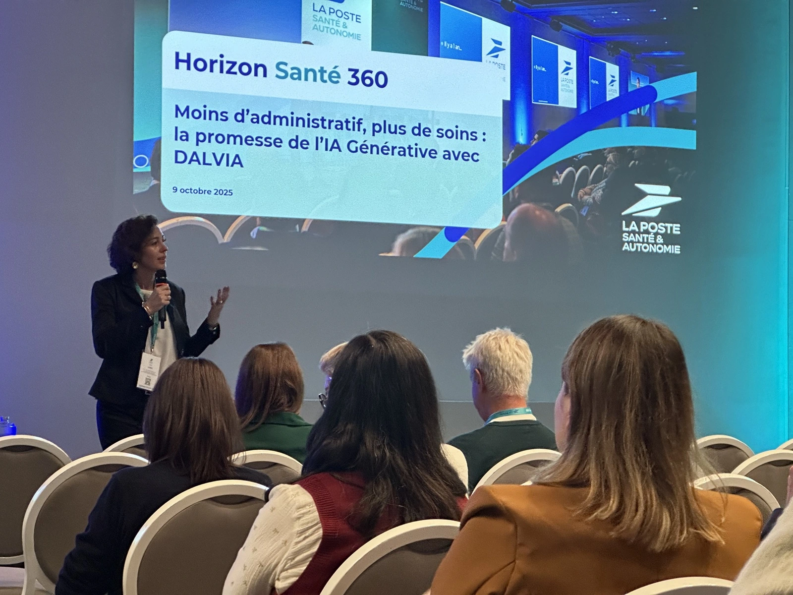La nouvelle solution DALVIA Vox, outil de transcription vocal pour les médecins, a également été présentée. La commercialisation par La Poste Santé & Autonomie est prévue prochainement.