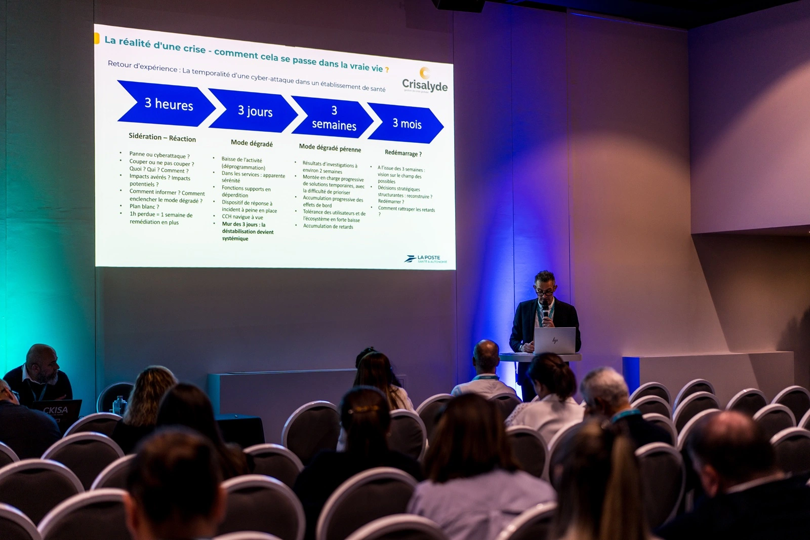 « Les crises cyber sont une réalité et une véritable crainte pour les directeurs d'hôpitaux. C'est une prise de risque forte pour les patients, c'est pourquoi il faut s'emparer de ce sujet des cyberattaques » a énoncé Sébastien Bachem, DGA en charge des Programmes Stratégiques chez Docaposte.
