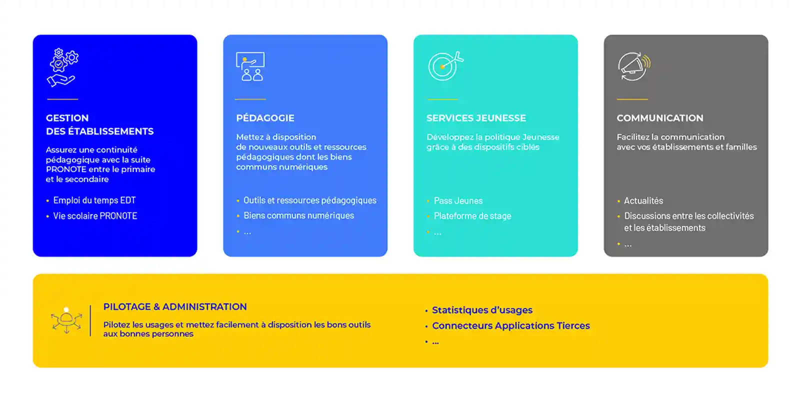 Sur la base de PRONOTE, Docaposte déploie non pas un Environnement Numérique de Travail (ENT) mais un Espace Numérique pour l’Éducation et la Jeunesse (ENEJ).