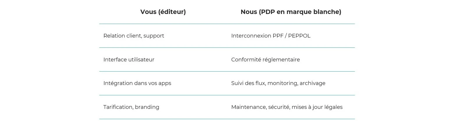 Avec une PDP en marque blanche vous valorisez votre expertise métier tout en offrant à vos clients une solution innovante, conforme et intégrée, sans avoir à en supporter la complexité réglementaire et technique.